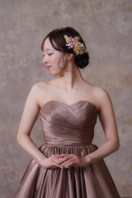 カルペディエムでは、お客様に料金の心配なく好きな衣装を選んでいただけるよう、全てのドレスとアクセサリーを無料で提供しています。最新トレンドからアンティークまで、幅広いスタイルの衣装を取り揃えており、専属スタッフが一緒になってお客様の理想に合う一着を見つけるお手伝いをします。撮影当日は、スタイリストと共にドレスに合わせたイヤリングなどの小物も選べます。お客様が満足のいく衣装選びをサポートします。