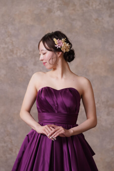 カルペディエムでは、お客様に料金の心配なく好きな衣装を選んでいただけるよう、全てのドレスとアクセサリーを無料で提供しています。最新トレンドからアンティークまで、幅広いスタイルの衣装を取り揃えており、専属スタッフが一緒になってお客様の理想に合う一着を見つけるお手伝いをします。撮影当日は、スタイリストと共にドレスに合わせたイヤリングなどの小物も選べます。お客様が満足のいく衣装選びをサポートします。