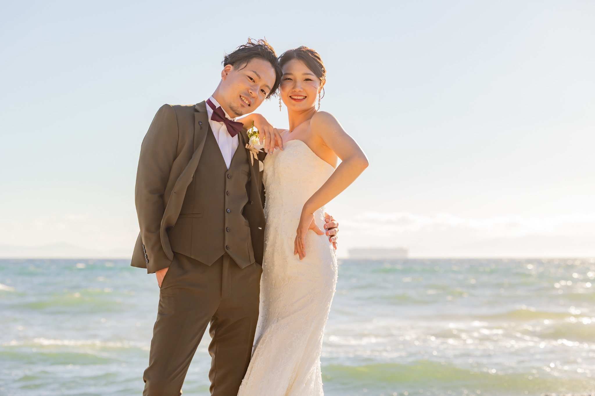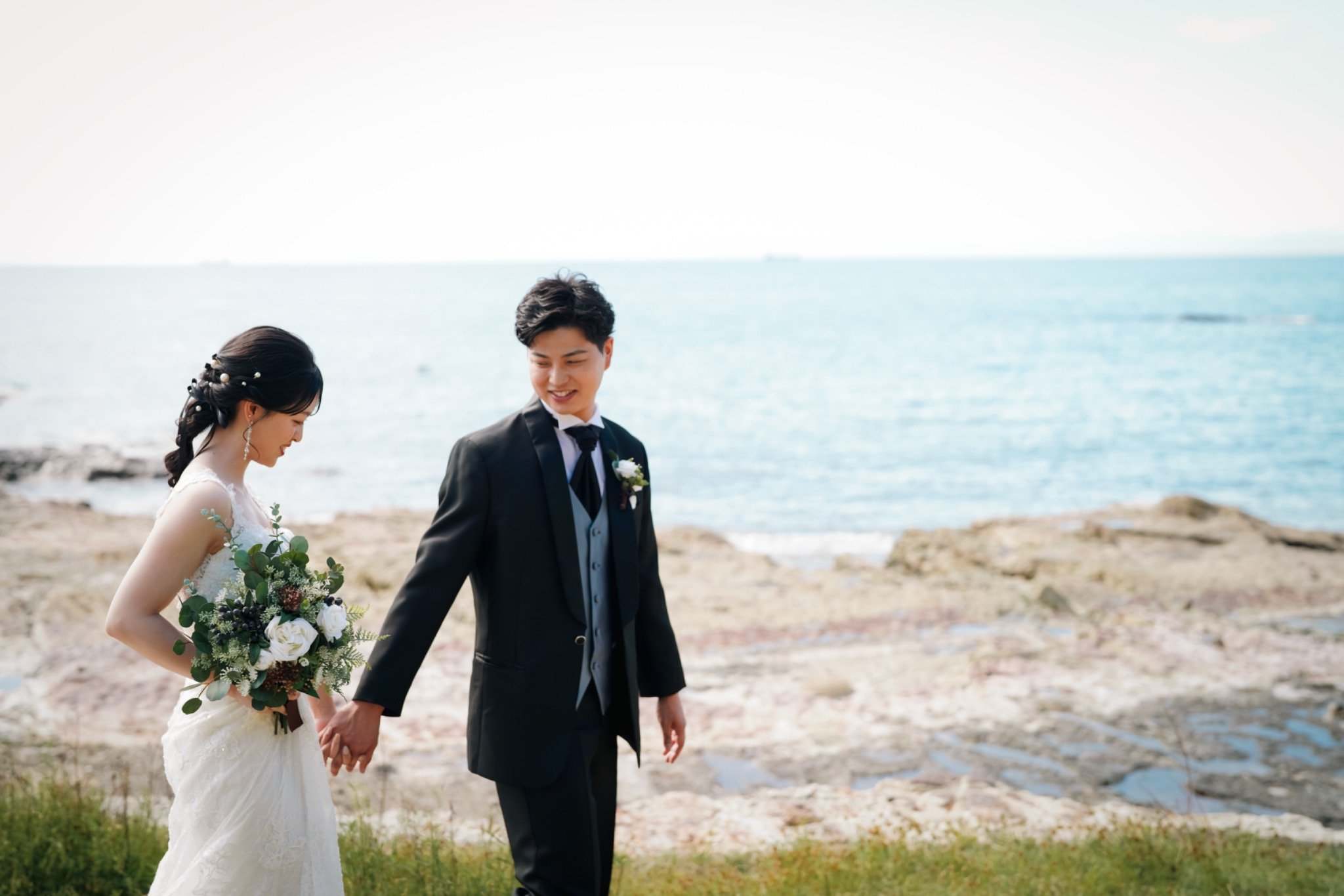海沿いの遊歩道を歩きながらの撮影は、まるでデートのようにリラックスした雰囲気の中で行えます。 見渡す限りの水平線と心地よい潮風を感じながら、自然と交わす会話やふとした笑顔――そんなおふたりらしい自然体の瞬間を、逃さずカメラに収めます。 かしこまったポーズではなく、歩いたり見つめ合ったりするだけで絵になるロケーションなので、写真が苦手な方にもおすすめ。 美しい海の景色とともに、おふたりの関係性が伝わるあたたかな1枚が残せます。