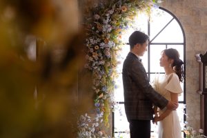 カルペディエムでは、お客様に料金の心配なく好きな衣装を選んでいただけるよう、全てのドレスとアクセサリーを無料で提供しています。最新トレンドからアンティークまで、幅広いスタイルの衣装を取り揃えており、専属スタッフが一緒になってお客様の理想に合う一着を見つけるお手伝いをします。撮影当日は、スタイリストと共にドレスに合わせたイヤリングなどの小物も選べます。お客様が満足のいく衣装選びをサポートします。